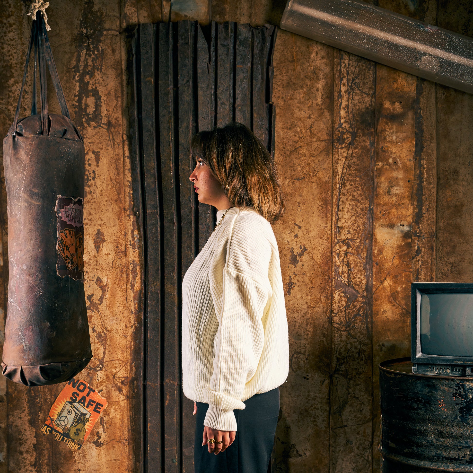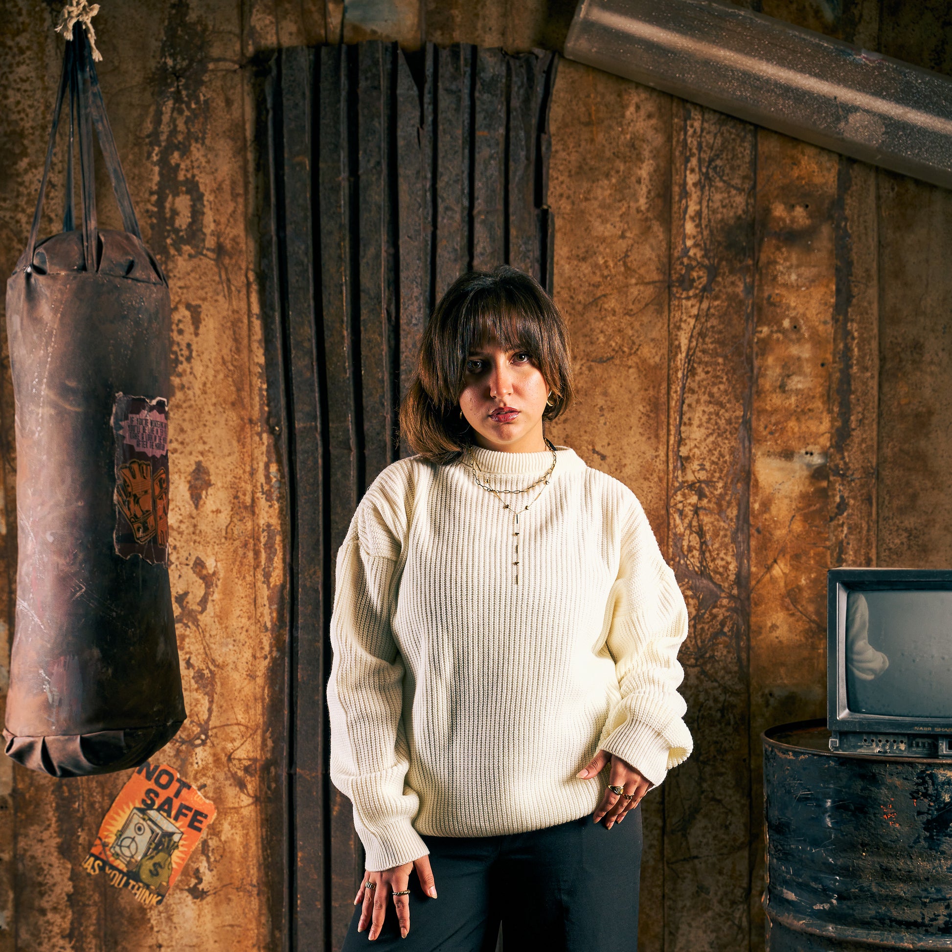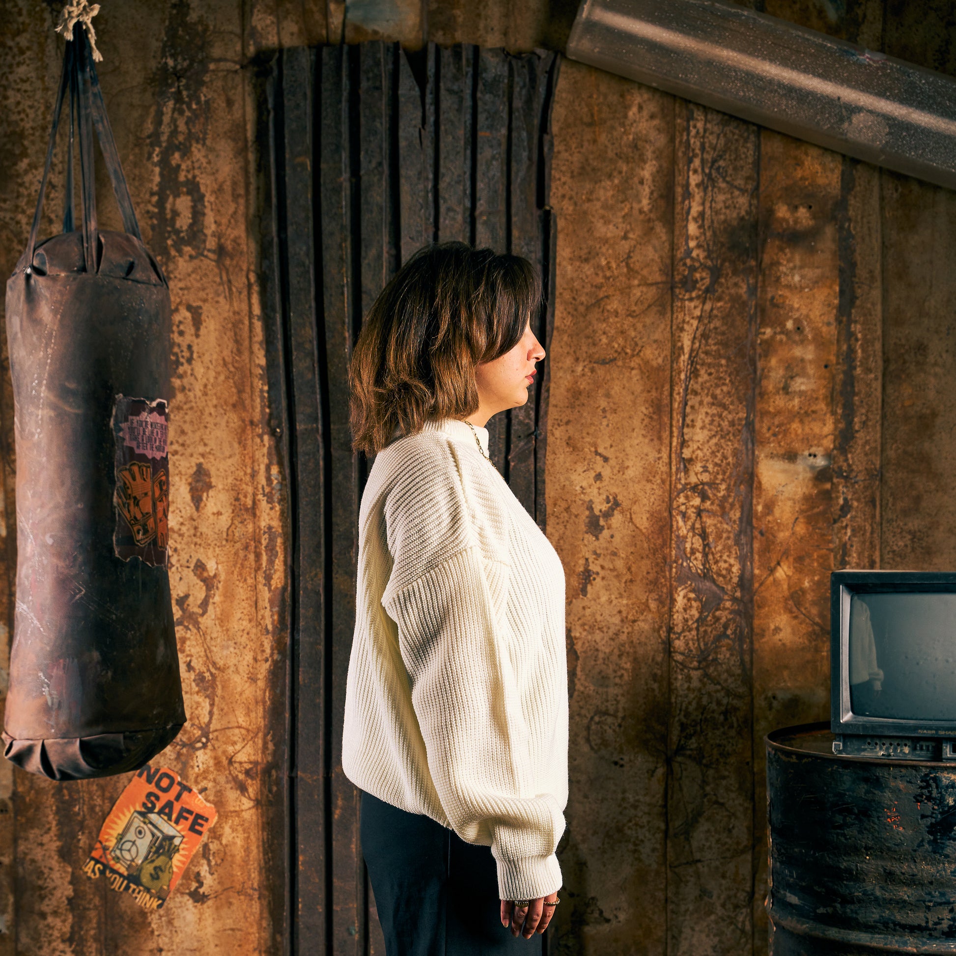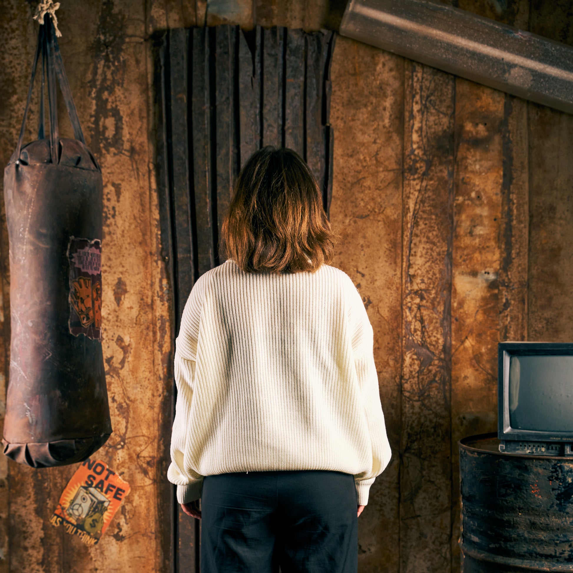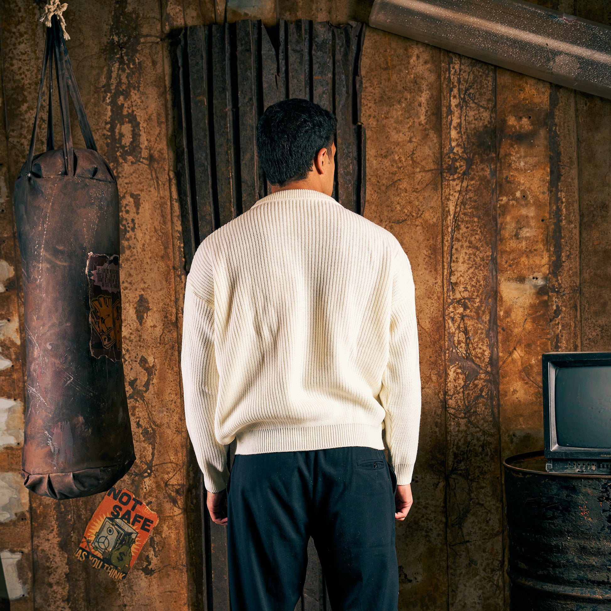 Heavy Rib Ivory Knit Sweater